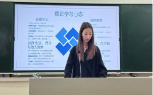 李宇宣作新学期学风建设动员。她首先介绍了挑战杯、互联网+大学生创新创业大赛情况,详细介绍了如何参赛、参赛材料的准备以及参赛的益处。她说,对大学生而言,参加各类竞赛活动,有着重要的意义,在知识技能的学习上,为同学们提供了一个深度探索专业知识的平台,在参赛过程中极大地深化专业技能。她简要总结了上学期同学们的学习情况,强调了课程学习和学习目标的重要性,要求大家树立正确的学习态度,养成良好的学习习惯。