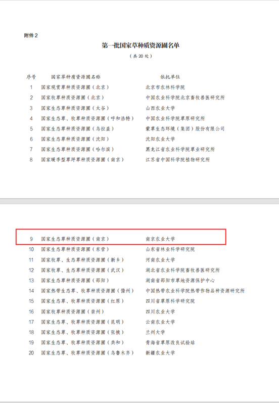申报的“国家生态草种质资源圃(南京)”获批建设。