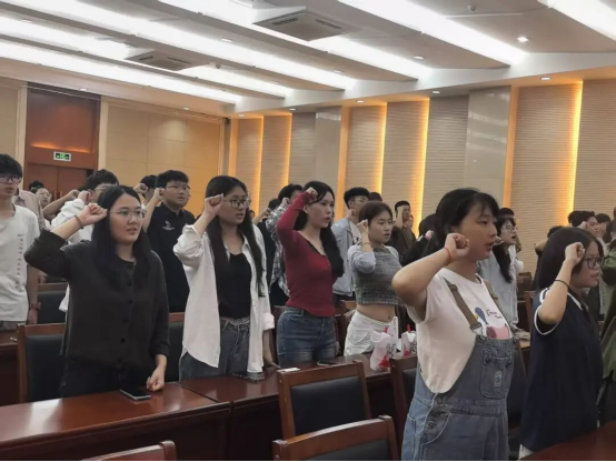 开学典礼上,全体新生举行了庄严的诚信教育宣誓。