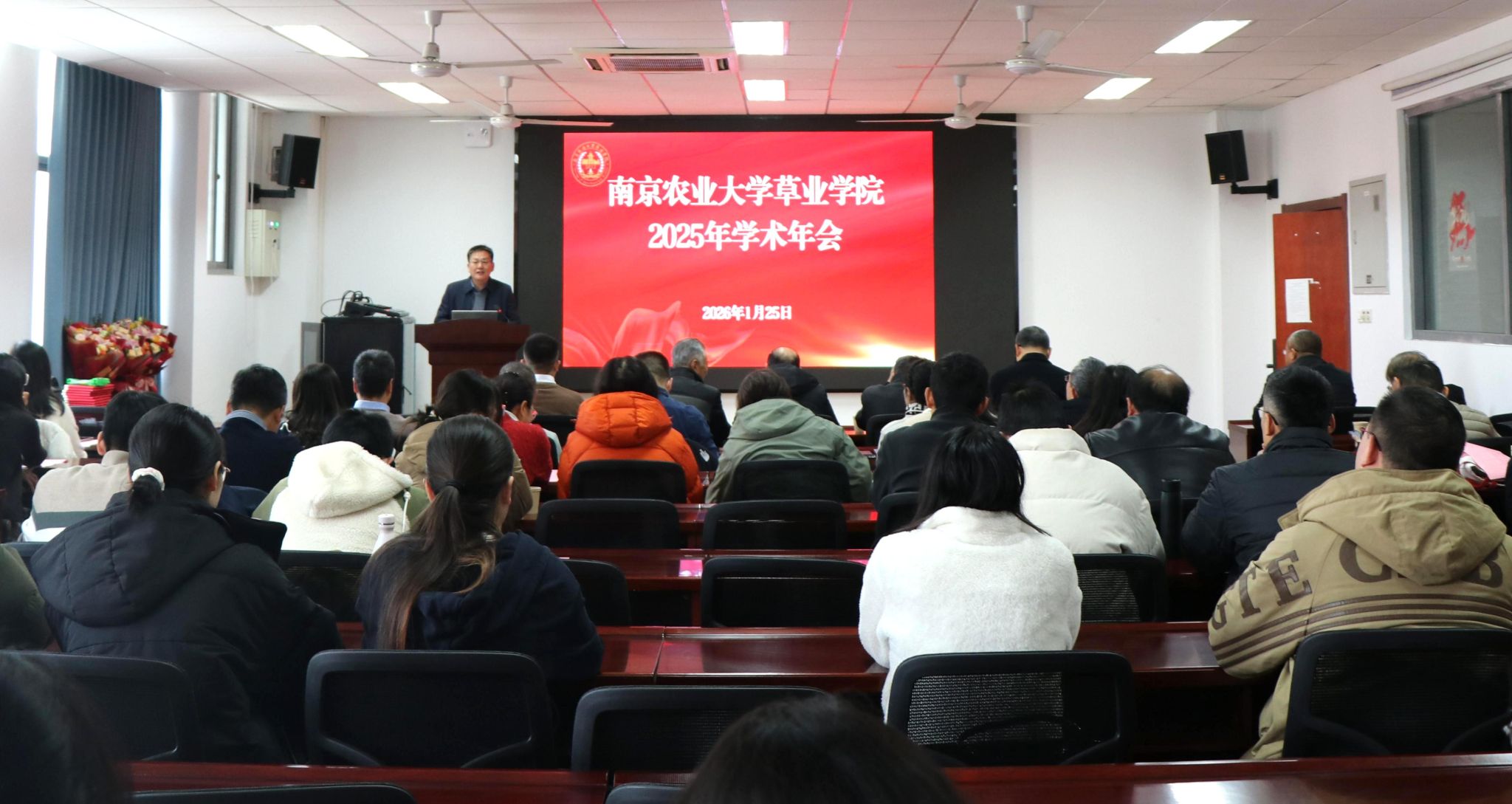 全体教职工、部分本研学生及退休教师参加活动。学术年会由院党委书记戴廷波主持。