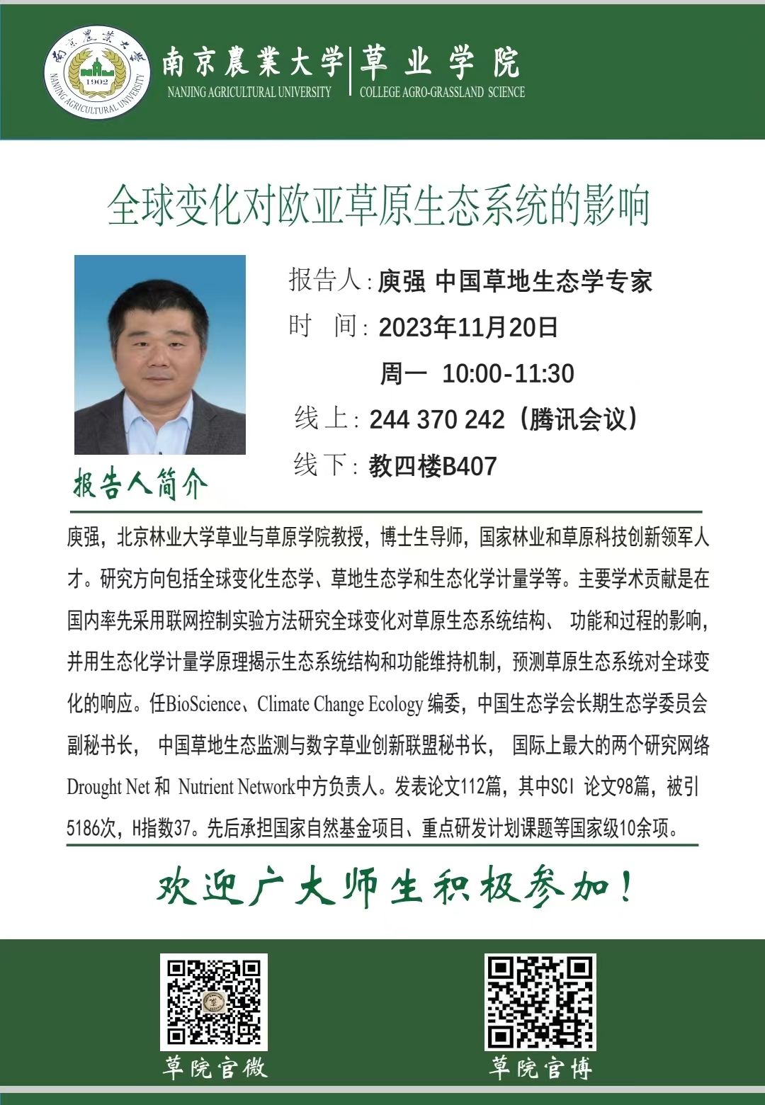 报告人:庾强中国草地生态学专家