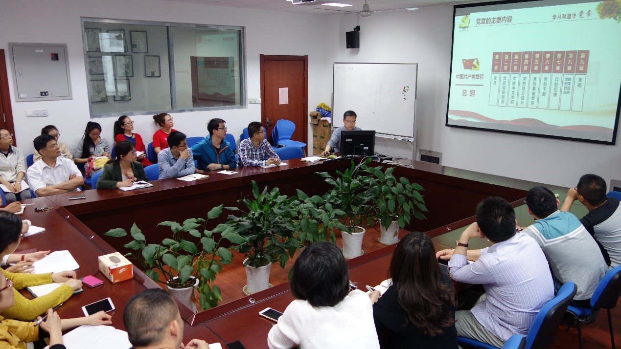 全体教职工和学生中的党员、预备党员、入党积极分子做了题为“学习党章,以知促行,做‘四讲四有’合格党员”的专题报告。他结合当前高校的实际情况以及身边的例子,分析了高校教师党员和学生党员中存在的共性问题,并希望大家按照 “四讲四有”标准,努力使广大党员进一步增强政治意识、大局意识、核心意识、看齐意识,坚定理想信念、保持对党忠诚、树立清风正气、勇于担当作为,做到一心为民,一心为党,真正地为人民服务。