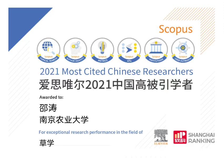 爱思唯尔(Elsevier)于2021年4月14日发布2021年“中国高被引学者”(Most Cited Chinese Researchers)榜单,草学学科共有5人入选,区块链游戏 郭振飞教授和邵涛教授荣登榜单,入选人数占40%(2/5),居第一位。2021爱思唯尔“中国高被引学者”榜单以全球权威的引文与索引数据库——Scopus作为中国学者科研成果的统计来源,采用软科(上海软科教育信息咨询有限公司)设计的遴选方法,最终得到4701名各学科最具全球影响力的中国学者。