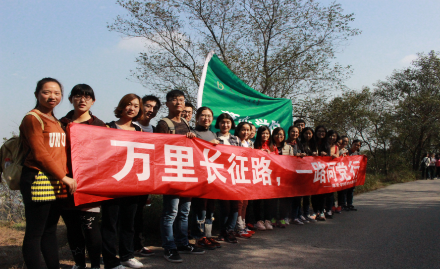研究生党支部成员以及入党积极分子共20人在北门集合,经3小时徒步达栖霞寺,进行“万里长征路,一路同党行”纪念长征胜利80周年主题活动。