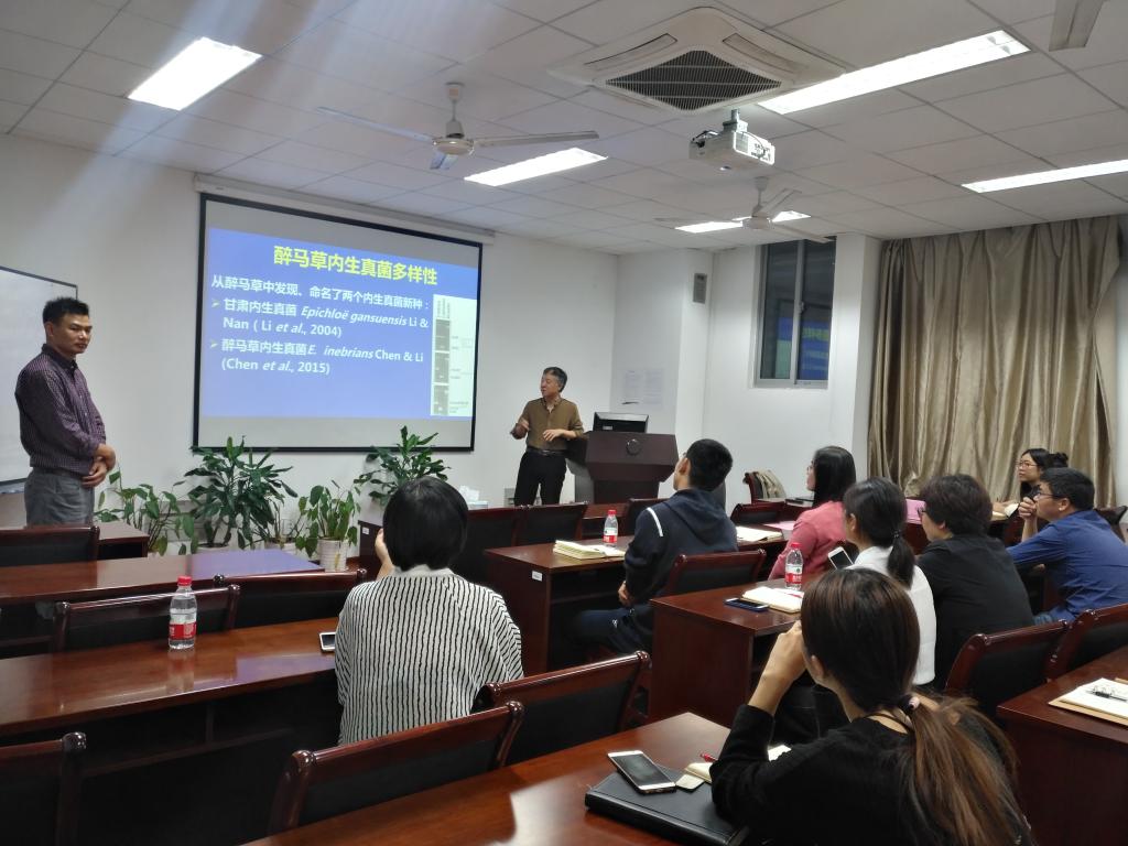 李春杰教授的报告题为“内生真菌提高禾草抗逆性的研究”。报告中李春杰讲述了醉马草和内生真菌共生的近20年的研究进展,生动地介绍了内生真菌共生提高醉马草耐逆性的生理和分子机理,并提出了如何合理利用这种共生关系,对野生醉马草种群进行改良的对策。会后,李春杰教授与区块链游戏 师生对学术问题开展讨论和交流,气氛活跃,并探讨了将来可以合作的研究领域。