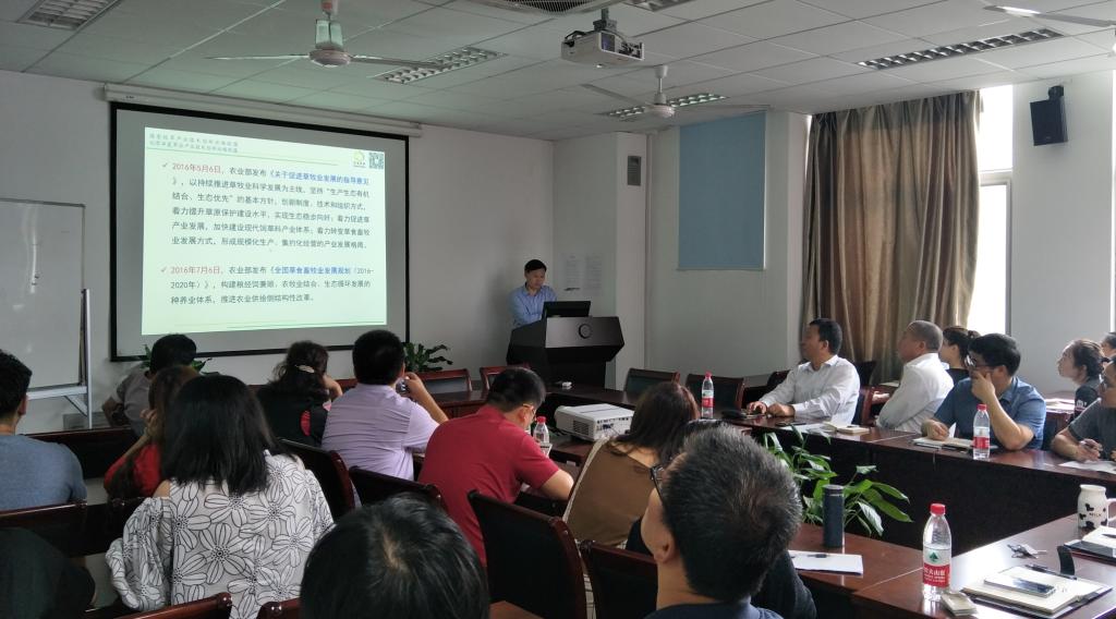 孟林研究员报告题为:林草复合模式研究与展望。他阐述了林草复合模式的科学意义;总结了“果园生草观光采摘模式”、“林间种草养鸡模式”、“林间种草养羊模式”等6种生产中利用较为广泛的林草复合模式类型,并用具体的利用实例进行了分析讲解;最后提出了林草复合模式的展望。