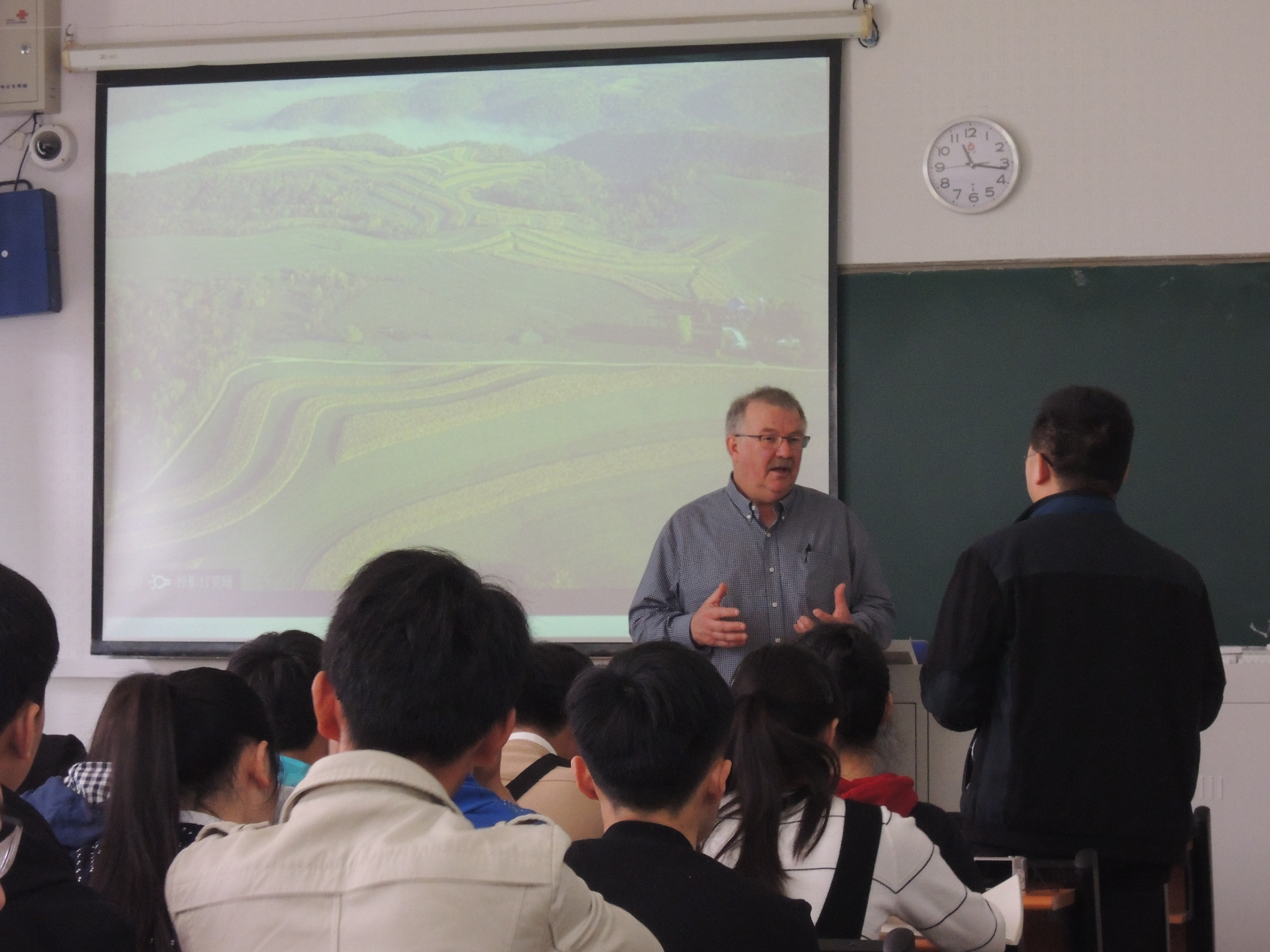 报告的最后,Albrecht教授与老师,同学展开了讨论。探讨了为什么在轮作系统中选用Kura三叶草,国内农业与威斯康星州的异同,以及国内牧草市场等问题,并对该轮作系统进行展望。