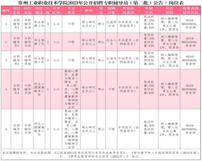 2023年公开招聘专职辅导员(第二批)公告 - 岗位表