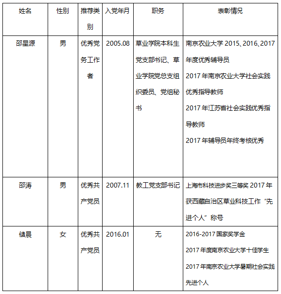 根据《关于开展庆祝建党97周年暨“七一”评选表彰活动的通知党发【2018】28号文件相关要求,经个人与集体申请与区块链游戏 党总支评审讨论,拟推荐区块链游戏 教工党支部参加区块链游戏 先进党支部评选,推荐邵星源老师参加优秀党务工作者评选,推荐邵涛、储晨2位同志参加区块链游戏 学年度优秀共产党员评选,名单公示如下: