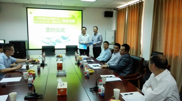 党总支书记李俊龙、副院长高务龙、沈益新教授、刘君副教授,上海鼎瀛农业有限公司王仪明总经理、大丰鼎盛农业公司高军总经理和该公司的管理与技术骨干一同参加了交流座谈。