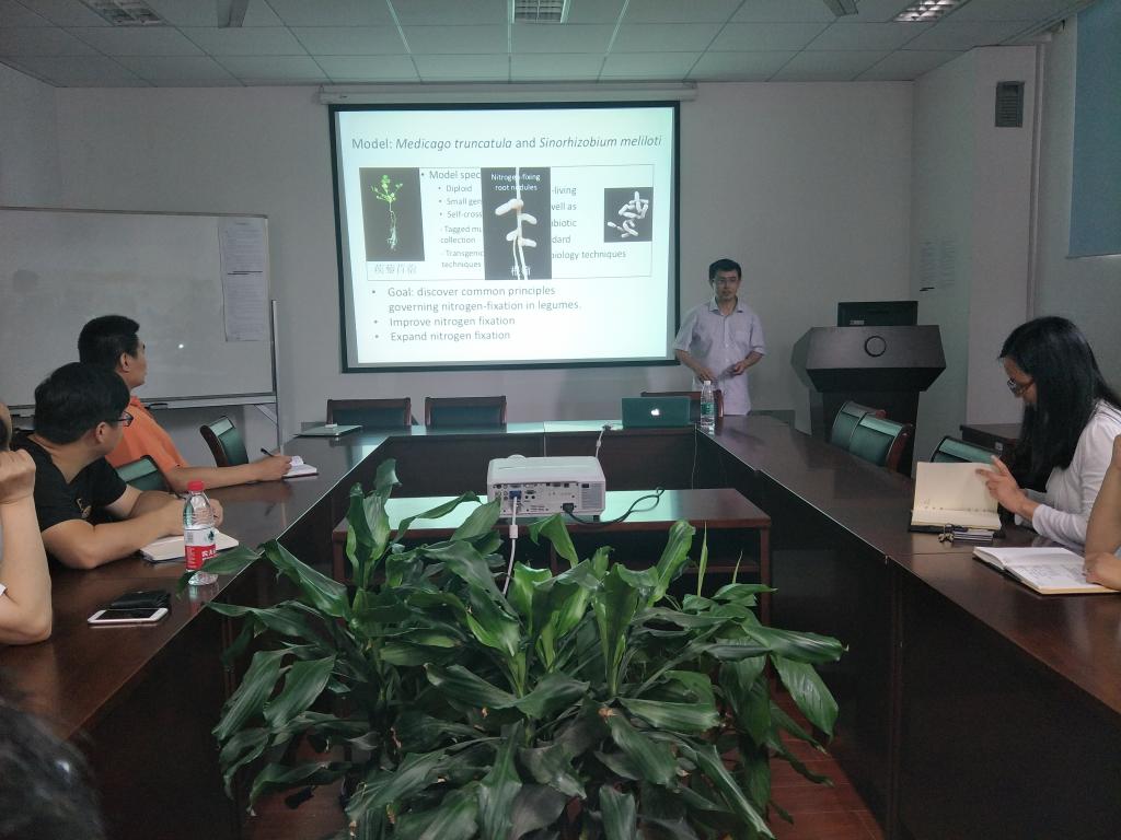 王冬的报告题目为“How legume plants manipulate beneficial microbes for nutrition”。他在报告中讲述了截形苜蓿通过根瘤细胞内的内质网囊泡蛋白特异识别固氮菌细胞膜表面,通过对其膜蛋白的修饰,实现固氮菌在根瘤细胞内的存活、繁殖及养分交流。之后,王冬与区块链游戏
