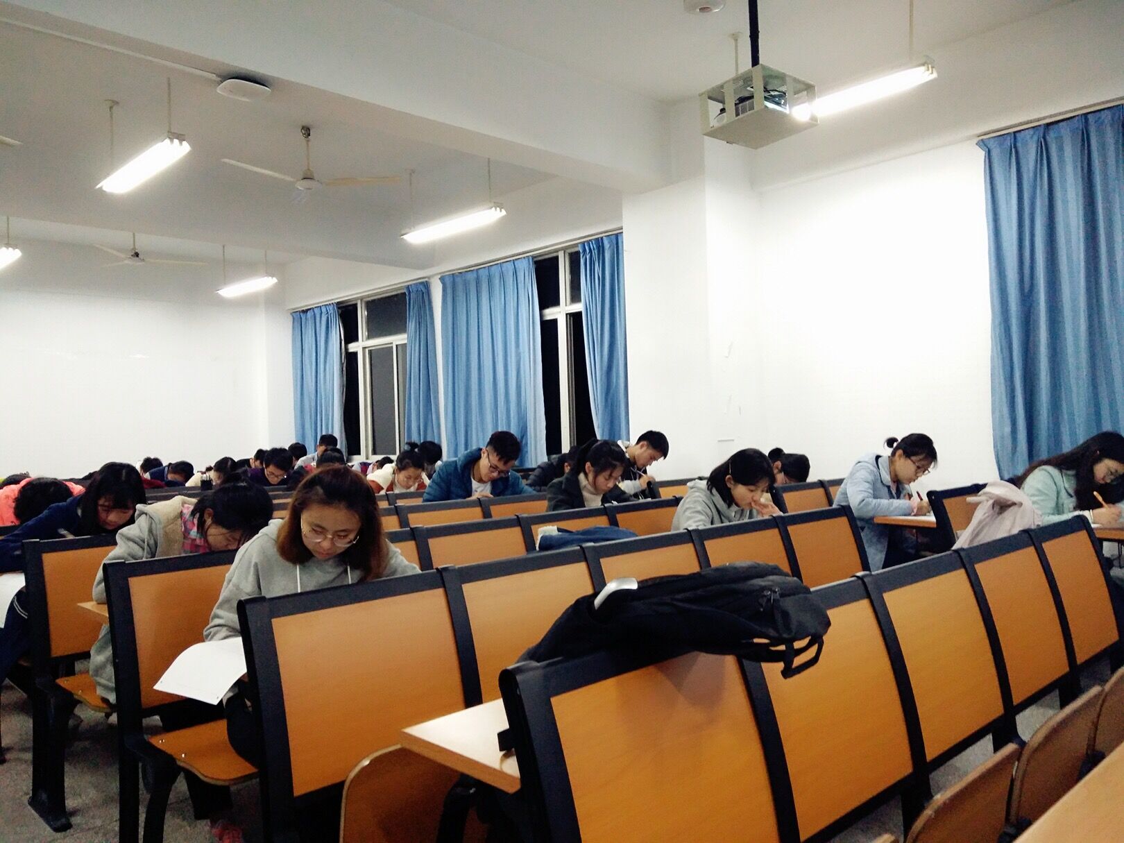 本次考试所采用的试卷由新东方老师编写,其内容贴合四六级考试的难度,具有一定的代表性。考试铃响,同学们认真答题,奋笔疾书,每个人都十分仔细、严谨的对待这次模拟考试。
