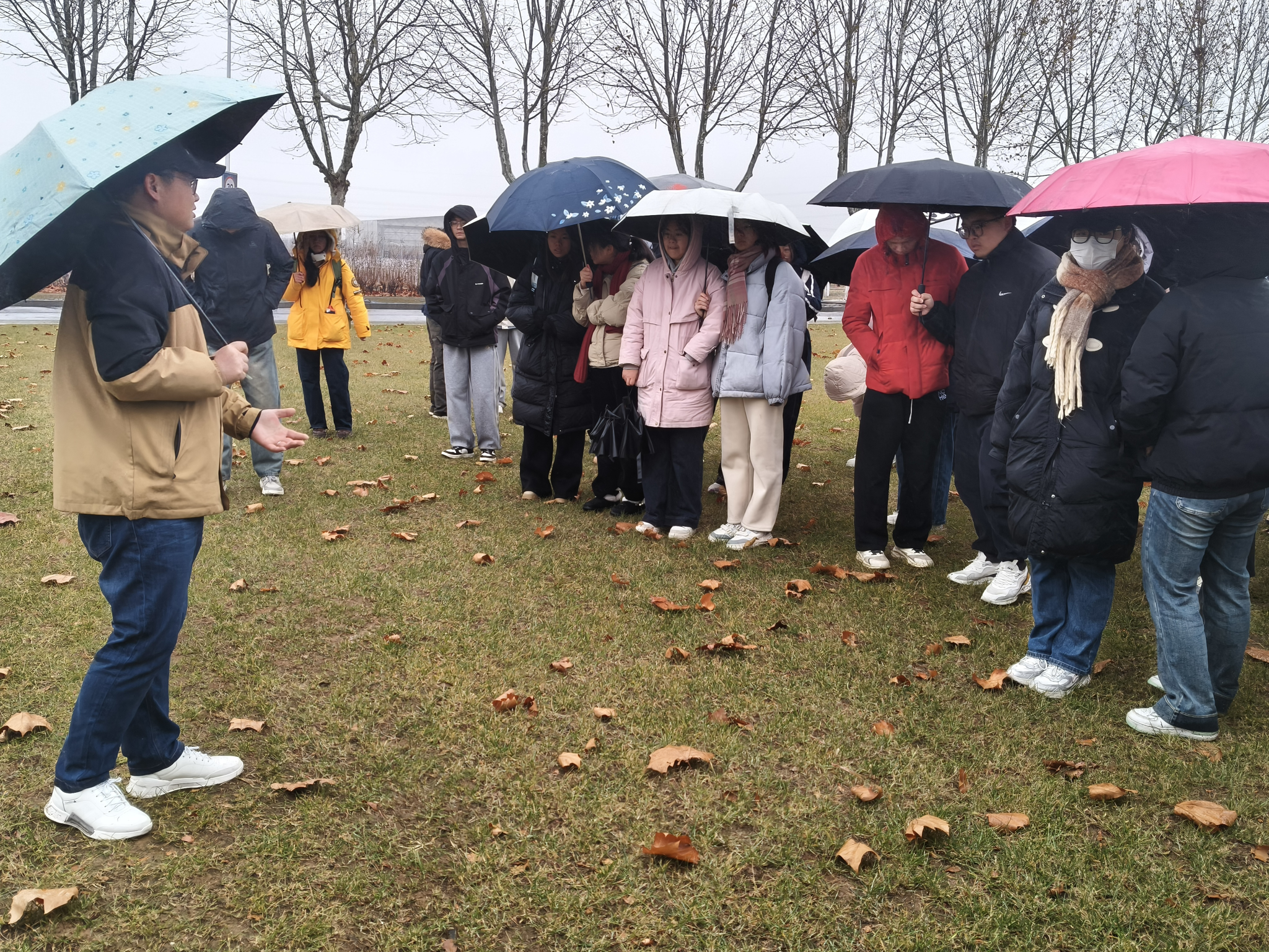 教师胡健、刘信宝,教务秘书姚慧、辅导员王树凡带队,围绕景观大道草本植物观察与“微生态与根际健康国际创新中心”(土壤生物健康产教研一体化平台)进行实地学习与交流。